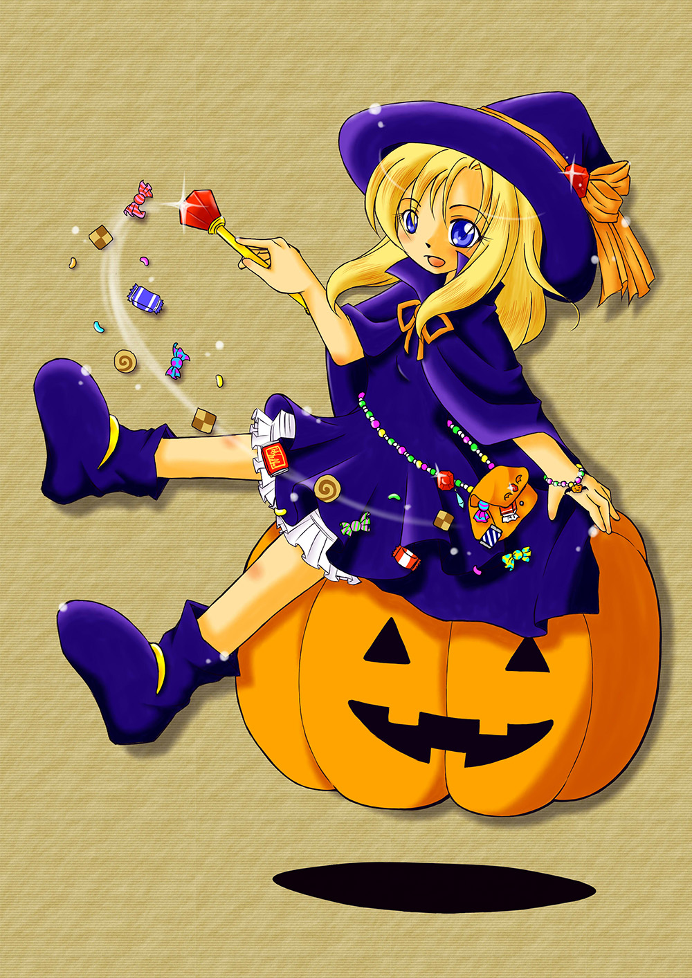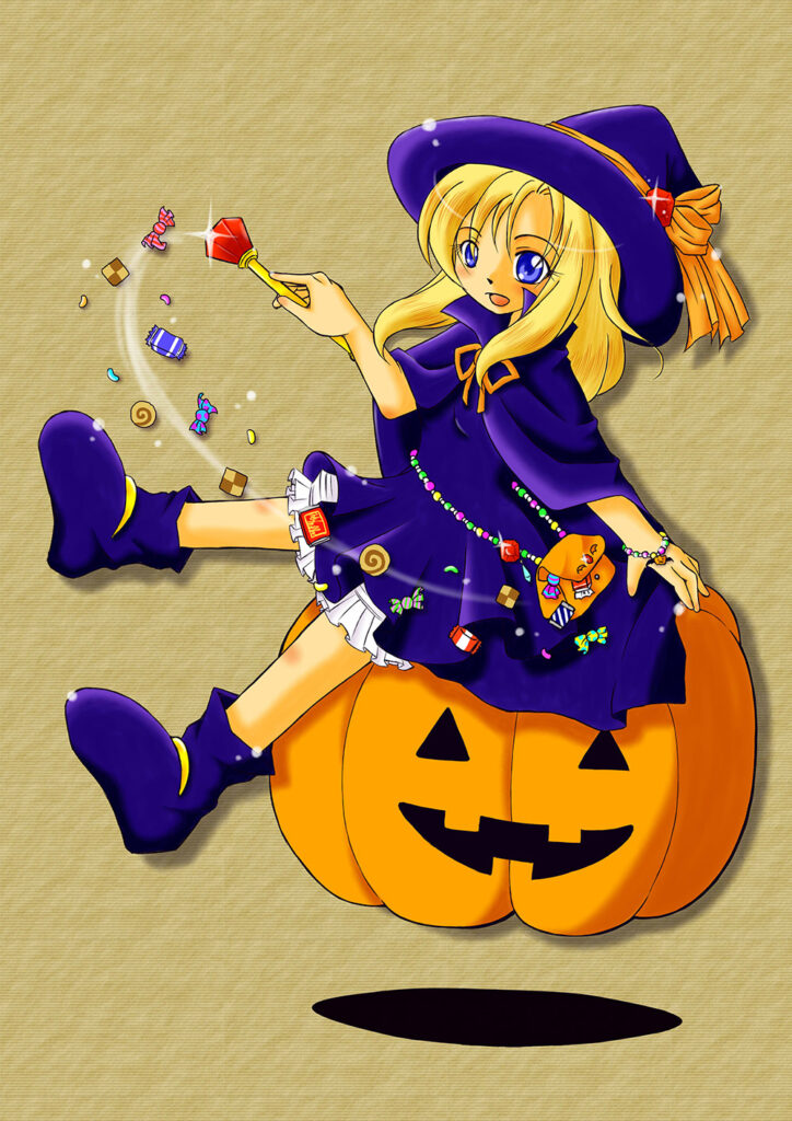 魔女っ娘ウリル 一次創作 2013.10.202025.09.28 the woRks HALLOWEEN HAVOC 10 ポスター絵。 華やかな雰囲気になるようにしてみました。ホワイトできらきら感を出すのが楽しかったです。
