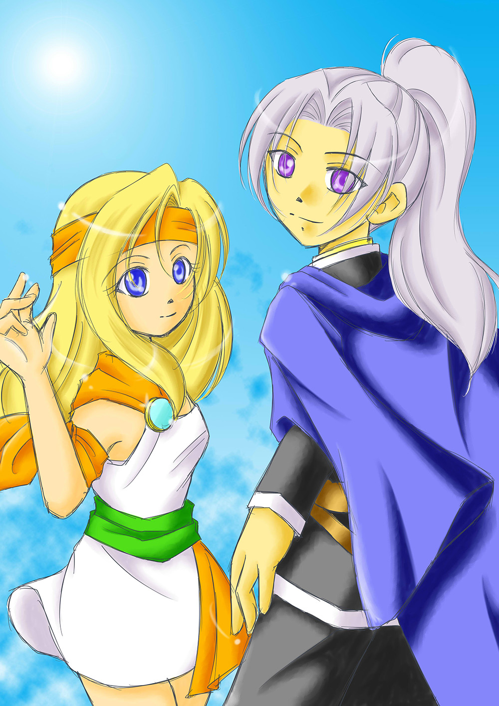 振り返り冒険者 一次創作 2014.11.092025.09.28 北海道COMITIA1 看板絵。 woRks以外のイベントということで、シンプルな雰囲気を心がけました。背景の雲っぽい感じがお気に入り。