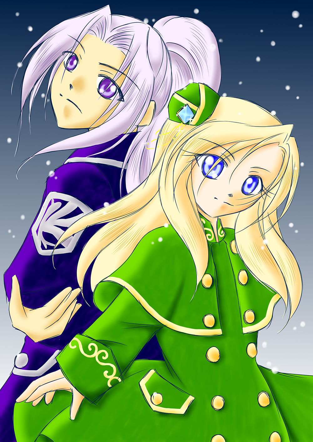 軍服っぽいやつ 一次創作 2017.01.292025.09.28 the woRks original 33 看板絵。 某PVの衣装を着せてみました。濃い色の服には雪が映えるよね。緑、もっと暗い色でよかった。