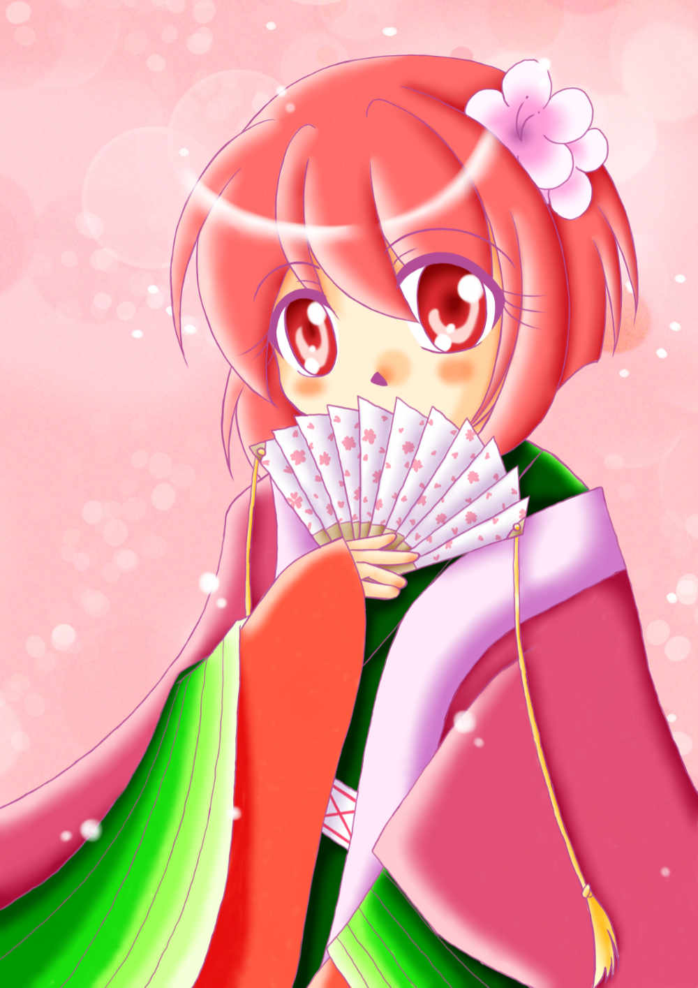 お雛祭りな美琴ちゃん 一次創作 2019.03.032025.09.28 the woRks original 37看板絵。 十二単風の衣装。重ねをグラデーションで表現したかったが改めて見るとのっぺりしちゃっている気がする。扇子の模様はお気に入り。